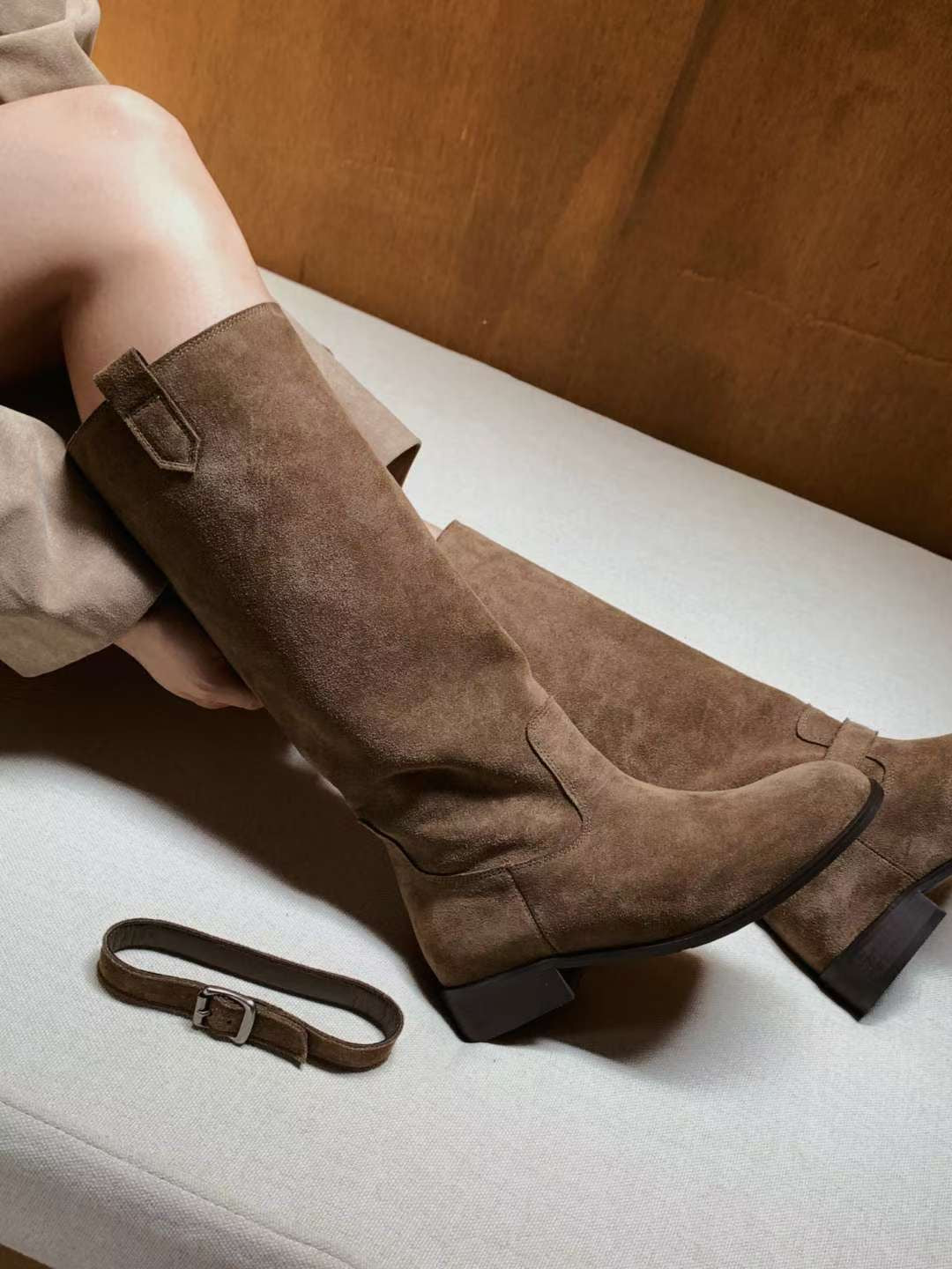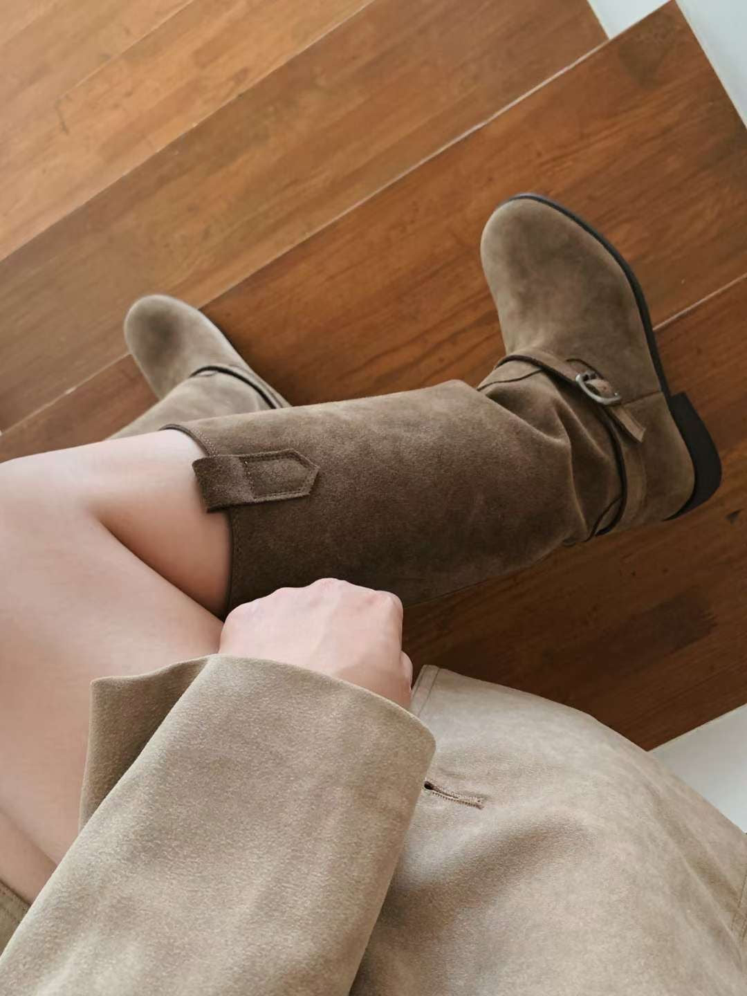 【真皮】可拆Belt麂皮長靴